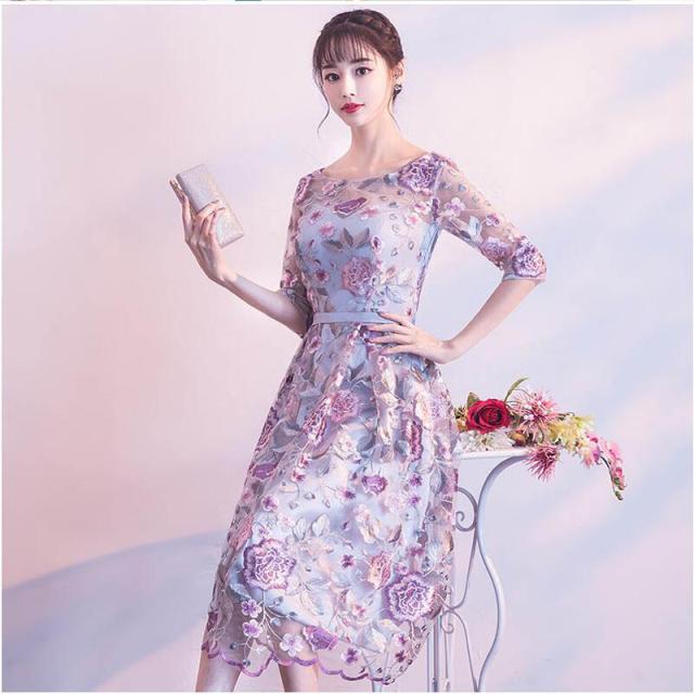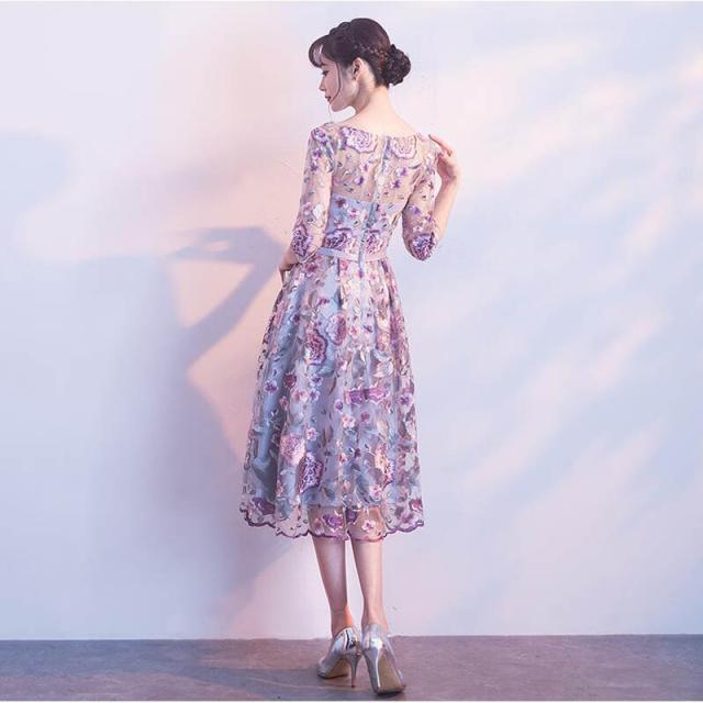 花柄 刺繍 エレガント ミディアム ミモレ丈 ドレス