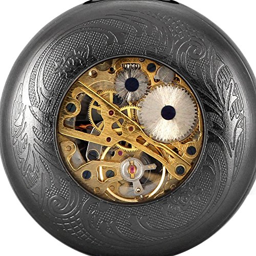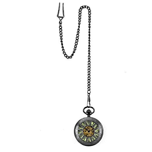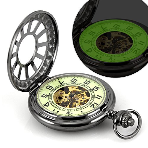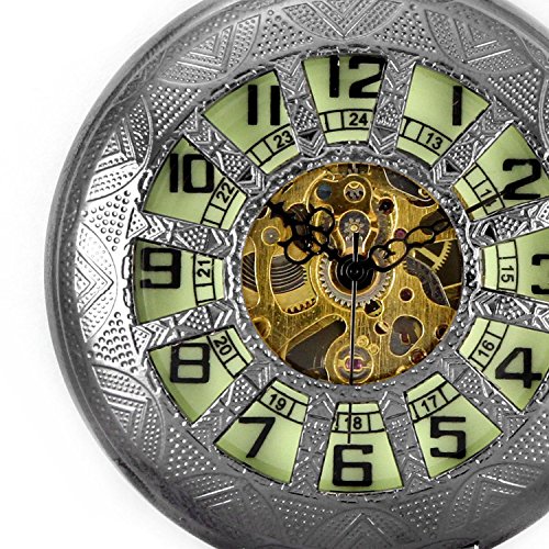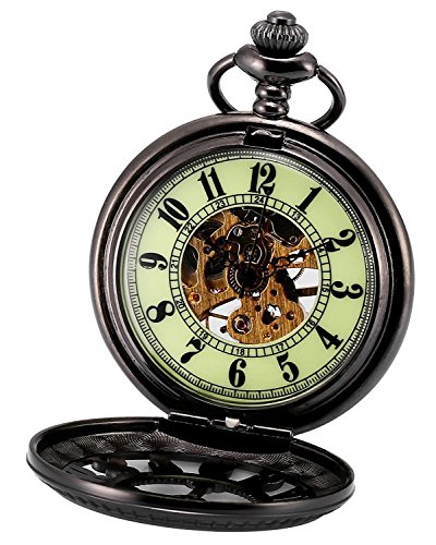 -. Title : Carrie Hughes Luminous dial Steampunk Mechanical Skeleton Pocket Watch with Chain for Men Women