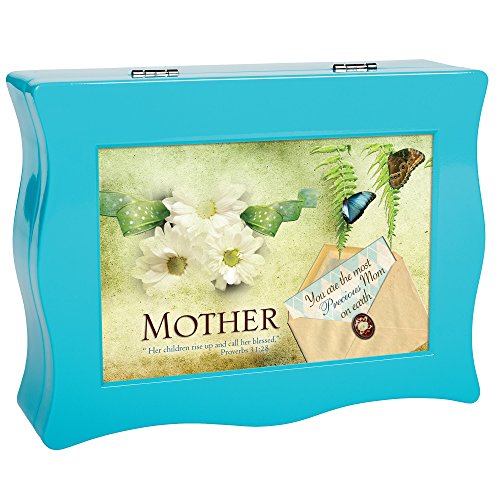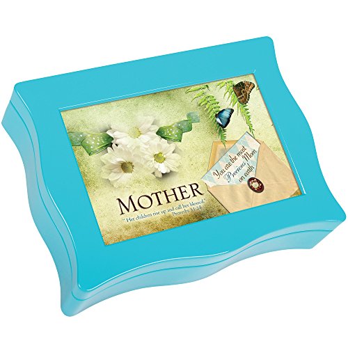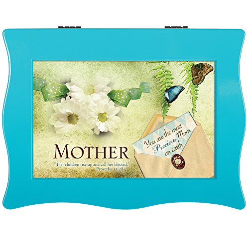 Mother Floral Butterfly Teal Blue Wavy Digital Music Box Plays Tune Everlasting God