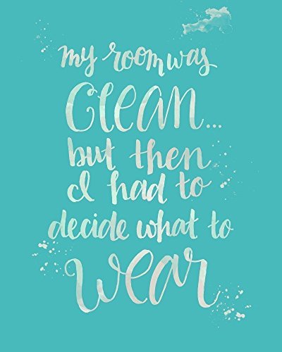 This listing is for a print of my original artwork featuring the quote "My room was clean... but then I had to decide what to wear." The quote is hand lettered in shades of teal, light lavender, and gray. This art print is a great addition to a bedroom or gift for a special (and maybe messy) person in your life! Each print has approximately 1/2 inch extra paper on all sides. This is so that you can easily mat and frame your new print if you choose to. The painting is printed on high quality archival matte paper. I ship in a mailing tube. Please note the frame is not included.