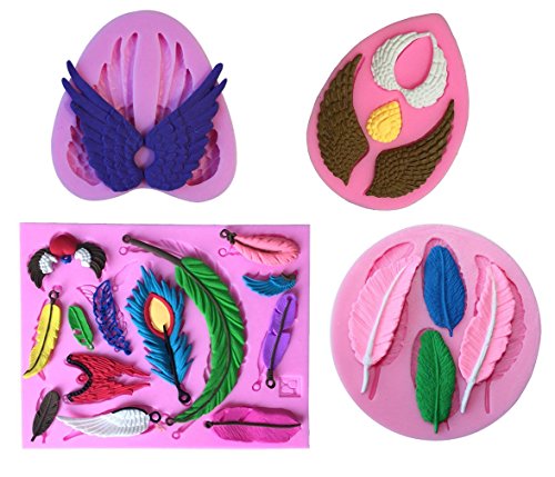 (Set of 4)Angel Wings Feather Pattern Silicone Fondant Cake Decorating Mold for Sugarcraft, Chocolate,Candy,Polymer Clay