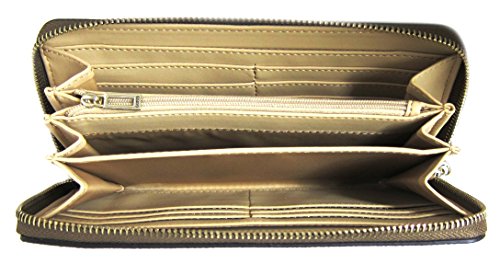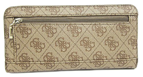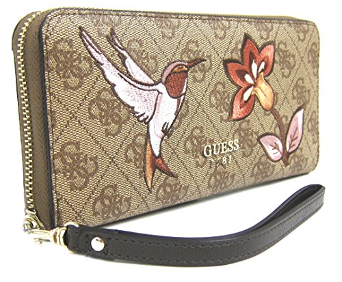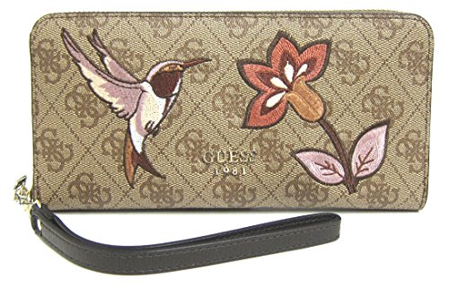 -. Binding : Apparel -. Brand : GUESS -. Color : Brown -. Department : womens -. EAN : 0190231070856 -. Feature : GUESS 4G logo faux leather exterior. Embroidered details; Accented with gold-tone hardware / Zip-around closure secures main compartment; Exterior back zipper pocket for extra storage / Interior has 8 credit card slots, 2 bill pockets and center zipper coin pocket; Detachable hand strap / Measurements: L 8" x H 4" x W 1" -. PackageQuantity : 1 -. ProductGroup : Apparel -. ProductTypeName : ACCESSORY -. Size : Large -. Title : GUESS Mckenna Women's SLG Zip Around Clutch Wallet, Brown -. UPC : 190231070856