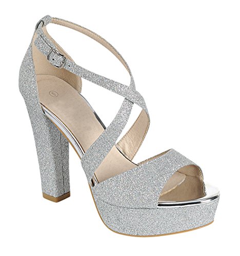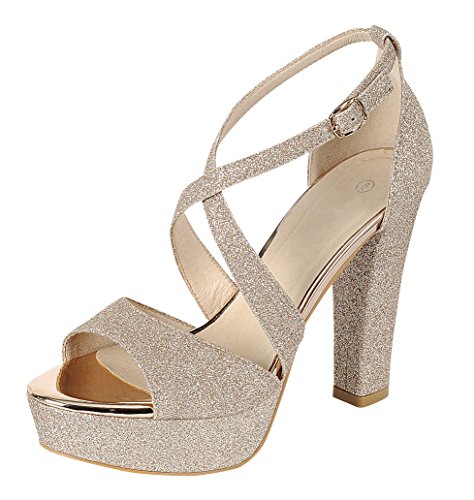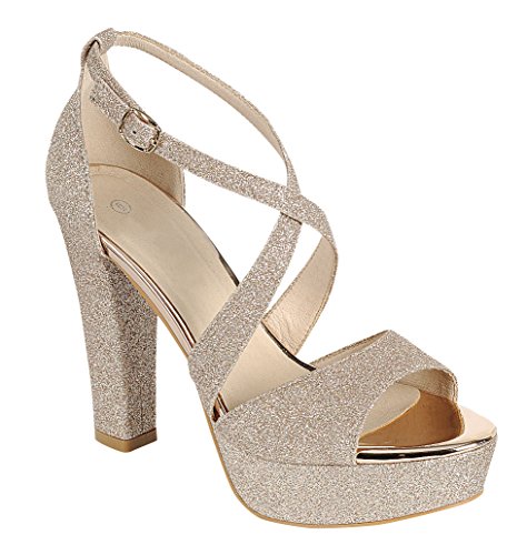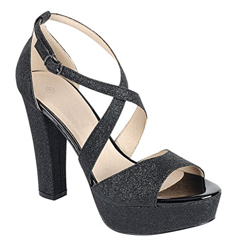 Cambridge Select Women's Peep Toe Crisscross Ankle Strappy Glitter Platform High Heel Dress Sandal