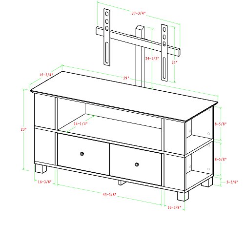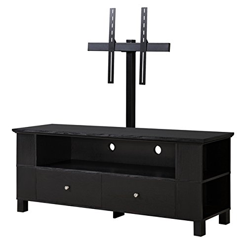 -. Binding : Home -. Brand : Walker Edison Furniture Company -. Color : Black -. EAN : 0812492011583 -. Feature : Mount can hold up to 60" TV, stand can up to 65" TV / Mount can hold up to 160 pounds, stand can hold up to 250 pounds / Features side shelving and 2 storage drawers / High-grade MDF construction with black finish / Mounting hardware not included -. IsAutographed : 0 -. Label : Walker Edison -. Manufacturer : Walker Edison -. Model : AZ60CMPBL-MT -. MPN : AZ60CMPBL-MT -. NumberOfItems : 1 -. PackageQuantity : 1 -. PartNumber : AZ60CMPBL-MT -. ProductGroup : Furniture -. ProductTypeName : HOME_FURNITURE_AND_DECOR -. Publisher : Walker Edison -. Size : 23" x 16" x 59" -. Studio : Walker Edison -. Title : Walker Edison 58" Black Wood Storage TV Cabinet with Mount -. UPC : 812492011583 -. Warranty : 30 day manufacturer's warranty against defects.