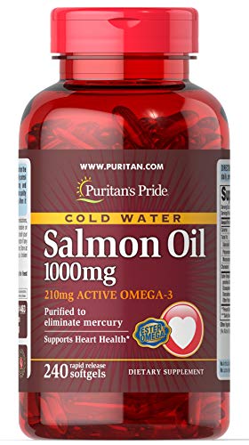 Puritans Pride Salmon Oil contains the finest Salmon Oil available. Salmon contains a high concentration of Omega-3 fatty acids that have been shown to help promote metabolic, circulatory and heart health. Take two softgels two times a day to gain the essential fatty acids your body needs for good health.