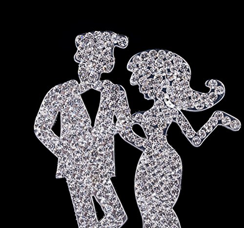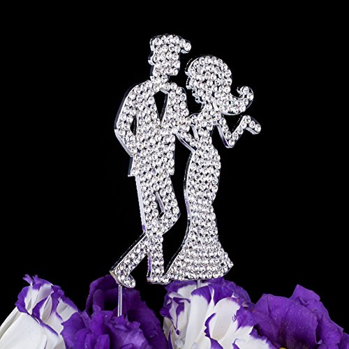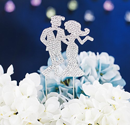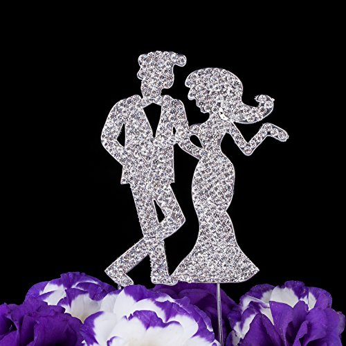 LOVENJOY with Gift Box Rhinestone Crystal Engagement Bridal Shower Wedding Cake Toppers Bride and Groom Bling Bling Decoration Silver (3.3-inch)