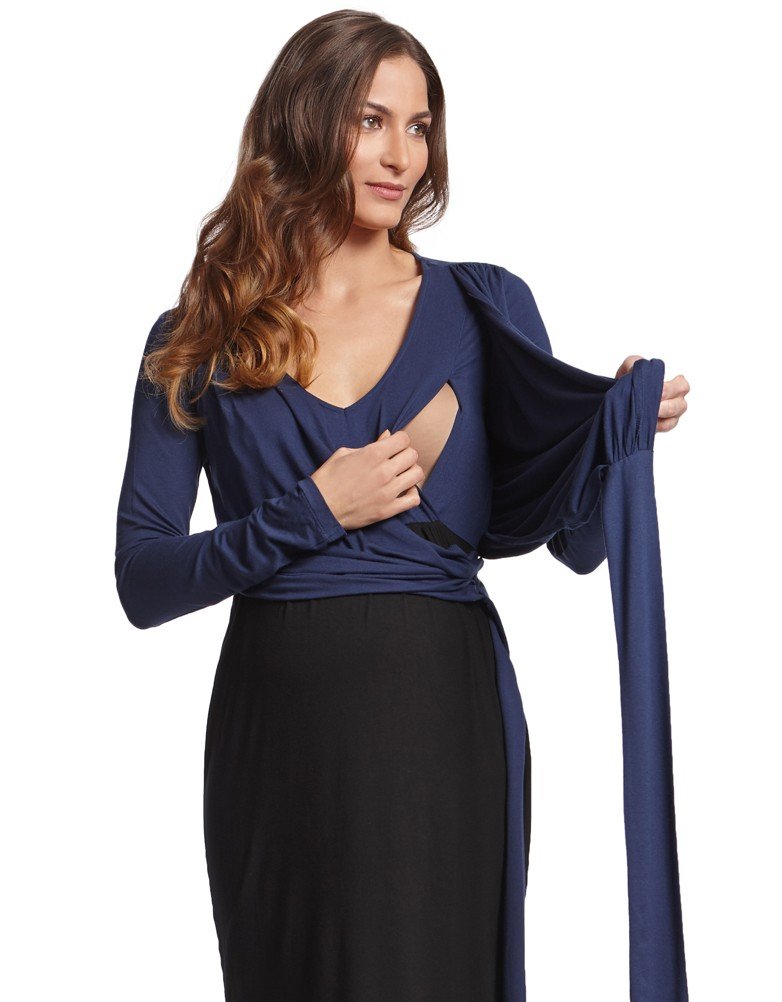 Seraphine Elsa Maternity Nursing Wrap Dress - Blue/Black - 6