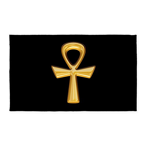 -. Title : 3' x 5' Area Rug Egyptian Gold Ankh Black