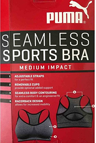 -. Binding : Apparel -. Brand : PUMA -. Color : purple -. Department : womens -. Feature : Adjustable straps for a perfect fit. / Medium Impact. / Removable cups provide optional added support. / Seamless body contouring for extra comfort and an engineered fit. / Racerback design allows for increased mobility. -. IsAutographed : 0 -. IsMemorabilia : 0 -. PackageQuantity : 1 -. ProductGroup : Apparel -. ProductTypeName : BRA -. Title : Puma Womens Seamless Sports Bra with Removable Cups