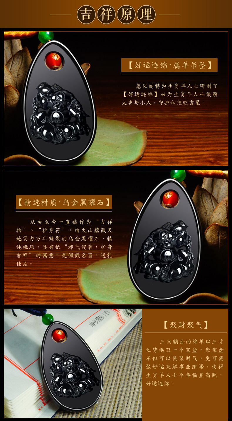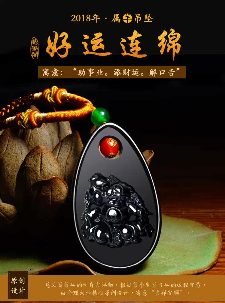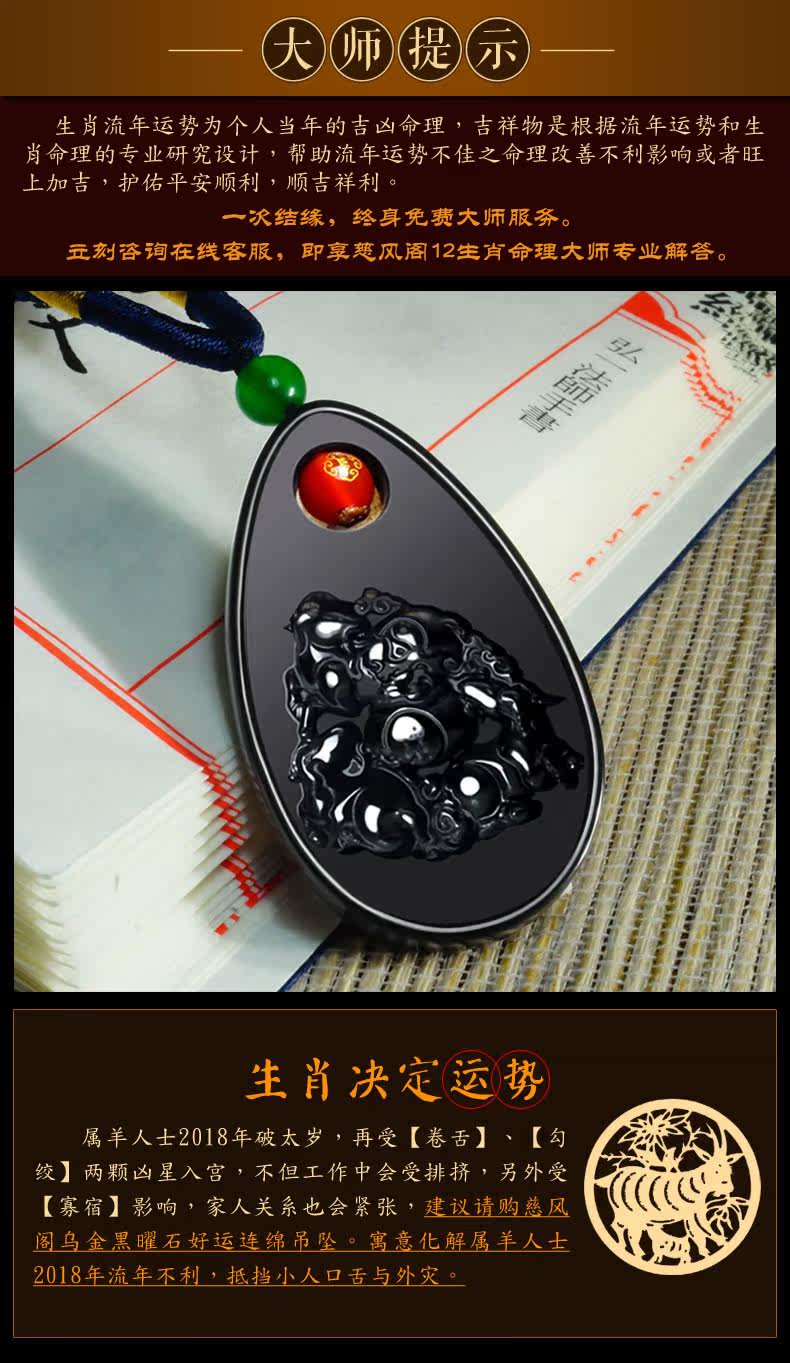 开光狗年十二生肖属羊吊坠黑曜石水晶吉祥物保平安项坠