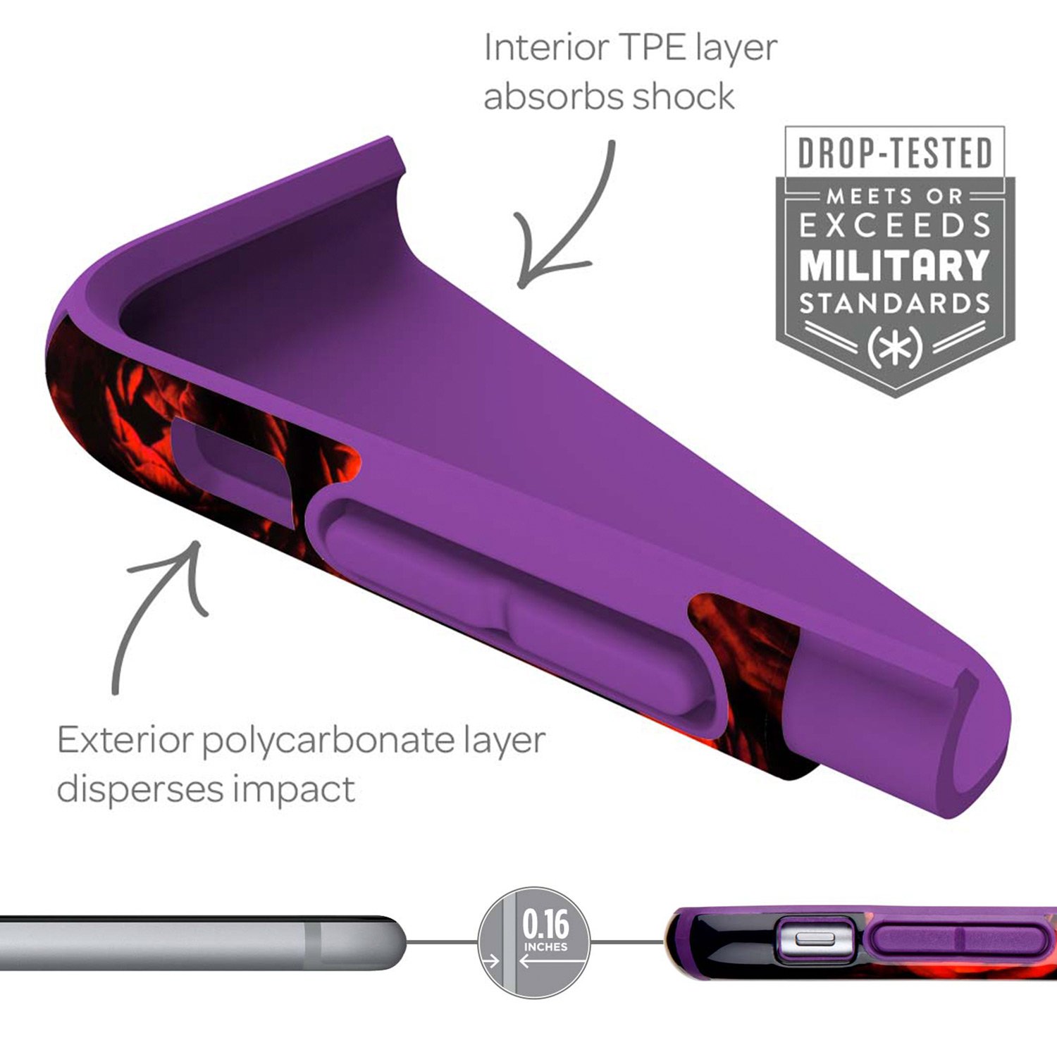 The inner side and the corner of the case adopt TPE material and have flexibility, so protect the terminal by absorbing impact such as falling.