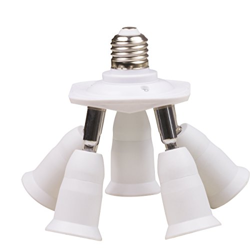 8T8 5 in 1 Lamp Socket Adapter Splitter, LED Bulb Holder Chandelier Converter for E26 E27 Standard Light 360 Degree Adjustable (Manual_5)