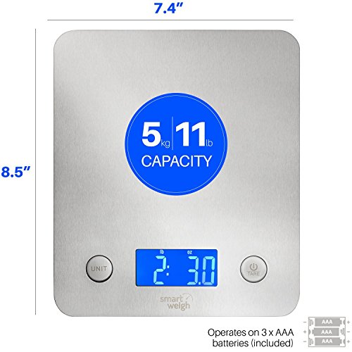 Smart Weigh 11 pounds or 5 kilograms Digital Multifunction Food and Kitchen Scale, Stainless Steel