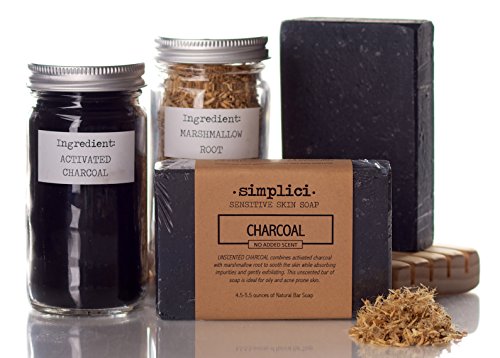 Simplici Activated Charcoal Unscented Bar Soap. Bulk 6 Pack. Palm Oil Free. With 15% Coconut Oil. Acne, Eczema, Psoriasis Safe. Body Wash For Oily Skin - Face,...