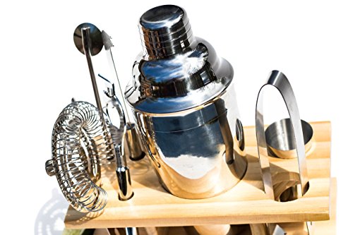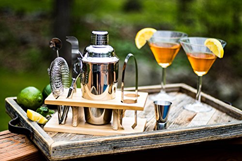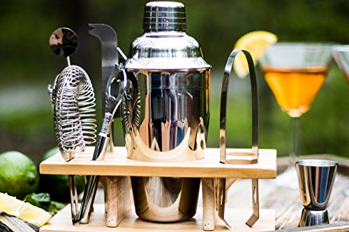 -. Feature : ENJOY THE FREEDOM of Making Your Favorite Cocktail In the Privacy of Your Own Home Using Your Very Own Bar Set With the Large 18.5 oz. Shaker. / FEEL THE LOVE From Your Family and Friends When They Receive This Great Stainless Steel Bar Tool Set as a Housewarming Or Wedding Gift. How About a Gift for Dad? Or the Grad? Or Just Because... ? / SHOW YOUR PRIDE in Entertaining Your Friends and Family! This Set Has Everything You Need Including a Large 550 ml/ 18. 5 oz. Stainless Steel Shaker, Double Jigger (1 oz. + 1/2 oz.). Ice Tongs, Heavy Duty Bottle/Can Opener, Heavy Duty Cheese Knife, Bar Spoon and Strainer in its Beautiful Wooden Stand. / JUST RELAX on Your Back Deck or Patio or Watch the Big Game in Your Favorite Recliner While Enjoying the Martini YOU just made! / SATISFACTION GUARANTEED We Take Our Customer Service Seriously. If You're Dissatisfied For ANY Reason, Return it. No Questions Asked.