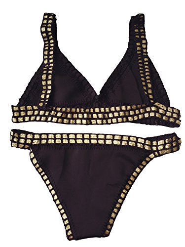 Title : Paplan Women Black Neoprene Handmade Crochet Bikini Set Gold Matching