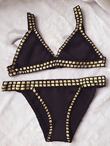 Feature : Color:BlackGold; Size:L / Due to hand measurement please allow slight deviation (1-3cm) / Please Pay attention to the size details before making your payment / The picture it can't be avoid to have a little color difference by light and display, please in kind prevail / What You Get: 1 x Bikini Set