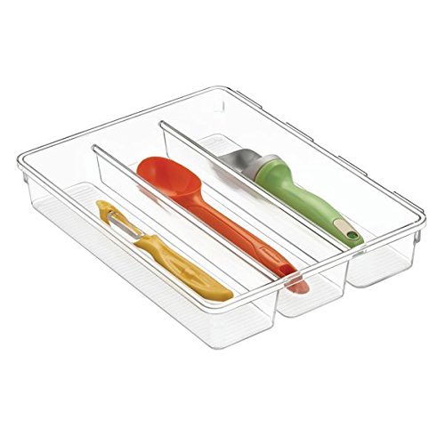 mDesign Interlocking Drawer Organizer Cutlery Tray for Forks, Spoons, Knives - Clear