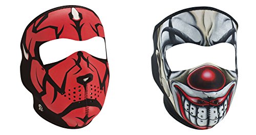 -. Feature : This Product is a 'Bundle' of 2 Neoprene Face Mask Items identified as a 'Red Darklord' and a 'Scary Chicano Clown' / The First Facemask Item is the ZanHeadgear 'Red Darklord', Glow in the Dark, Full Face Neoprene Face Masks / The Second Facemask Item is the ZanHeadgear 'Scary Chicano Clown' Full Face Neoprene Face Masks / Face Masks / Ski Mask Items are made of Durable, Naturally Warm & Water Resistant Neoprene Face Mask Material / Face Mask Sizes are adjustable, by up to 2 inches, using the Hook & Loop closure, located at the back of the head