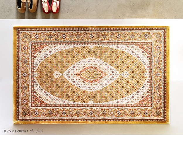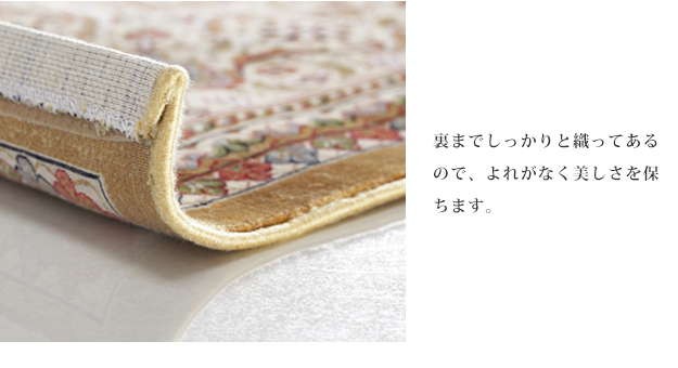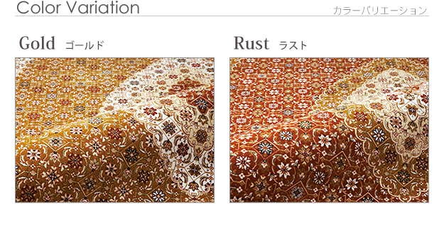 シルクのような質感、重厚感のある色合いとソフトな肌ざわりが特徴です。ペルシャ伝統のマヒ柄のデザインは、豪華な雰囲気を醸し出してくれます。