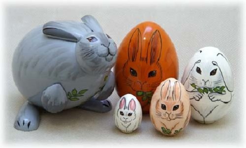 -. Title : Easter Bunny Rabbit 5 Piece Russian Wood Nesting Doll Made in Russia Decoration
