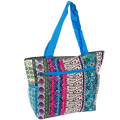 -. Title : Silverhooks Womens Boho Patchwork Beach Tote Bag
