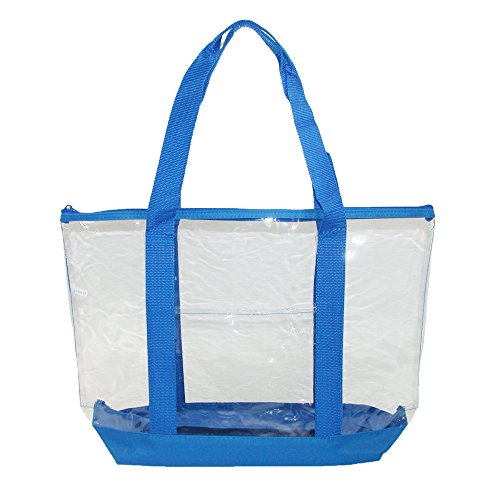 -. Brand : Liberty Bags -. Color : Transparent -. Department : womens -. Feature : Measures 19 1/2 X 12 X 5 1/2 inches / Exterior slip pocket and double handles for convenience / Full zipper closure to keep items secure / Great for sporting events, concerts and other venues that require clear bags -. Label : Liberty Bags -. Manufacturer : Liberty Bags -. PackageQuantity : 1 -. ProductGroup : Shoes -. ProductTypeName : HANDBAG -. Publisher : Liberty Bags -. Studio : Liberty Bags -. Title : Liberty Bags Clear Zip Top Tote Bag with Double Handles