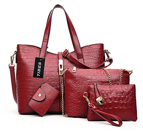 -. Title : Tibes ハンドバッグ合成皮革 ショルダーバッグおしゃれ 小さい財布 人気 4点セット全5色