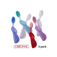 -. Feature : The wide oval head, thumb grip and large comfortable handle available in right or left orientation makes this a classic toothbrush - now in its 22nd year of production. / The very fine Tynex nylon bristles make it much softer than regular brushes - while the mass of bristle tips (6,500 - over 3 times more than regular) massages the gums and removes plaque effectively. / The extra bristles make it more durable and 60% of our users report it lasting three times longer. / The right or left hand orientation automatically places the bristles at the 45 degrees recommended by the ADA. / The handle is made of renewable resource cellulose - 93% wood based from sustainable yield forests.