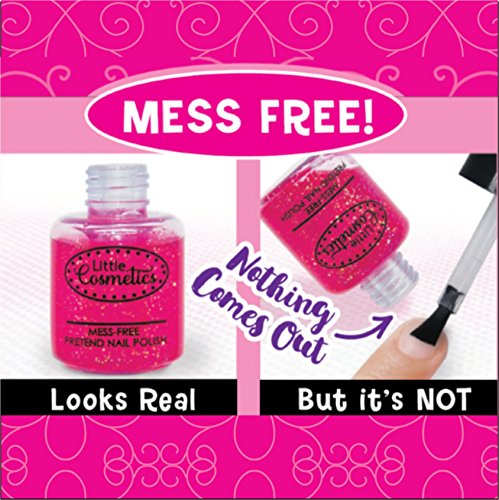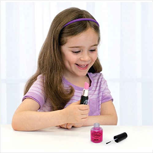 This mess-free pretend makeup set does a remarkable job of looking like the real thing, inspiring countless play scenarios and interactions in which little girls get to act just like Mom. Tilt the bottle of pretend nail polish, and the liquid inside stirs and swirls as if ready to come out. But removing the cap reveals that the brush applicator that appeared to be immersed in polish is perfectly dry! Invert the bottle and nothing comes out. The pretend lipstick looks so realistic with a removable cap and twistable tube. Twist the bottom and the pretend lipstick emerges. Reverse the twist and it retreats back into its casing, just like real lipstick would do.Feature
