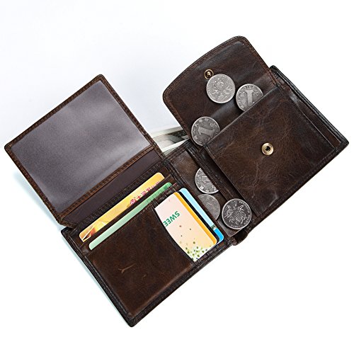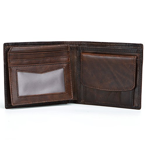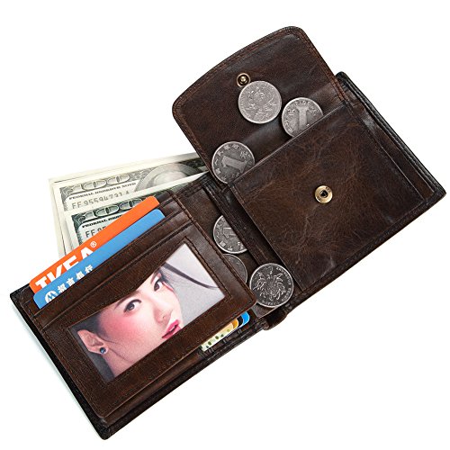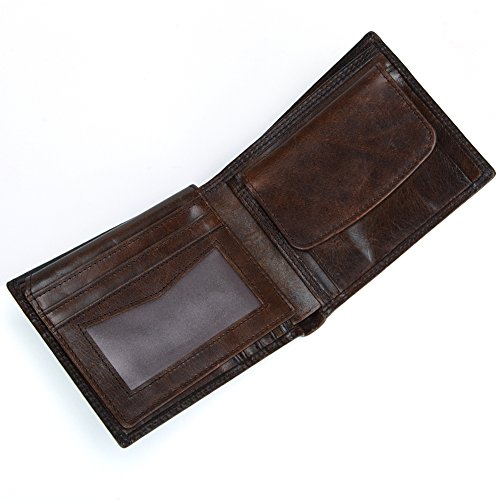 ANQILA Men Genuine Cowhide Leather Trifold Wallet Credit Card Holder with 2 ID Window