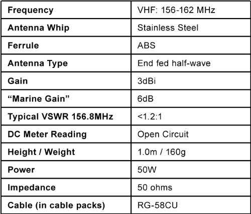 Marine VHF Antenna - 3 1/2 Feet Stainless Steel for Sail Boats - Five Oceans