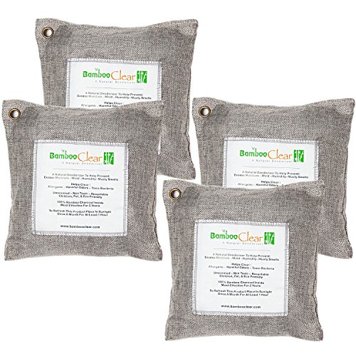 Bamboo Clear - All New Activated Charcoal Air Purifier - Non-Toxic, Chemical Free Deodorizer - 200 Grams (4 Pack) (Silver) Back to School Gift Idea - Classmate Roommate Men Women Birthday Gift Idea