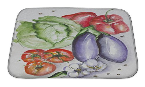 Gear New No Slip Microfiber Memory Foam Watercolor Vegetables Set Bath Rug Mat, 24" X 17"