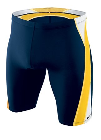 Studio : Nike Publisher : Nike Binding : Misc. Product Description Nike Core Team Color Block Jammer - TESS0047 It's important to be a winner-and being a winner means being fast. Represent your team while you speed through the water in the fitted Nike Team Color Block Men's Swim Jammer. Elastic waist with interior drawcord Contrast stripes at side-seams Flat-seam construction to minimize chafing Fabric: 81% nylon/19% spandex Colors: Black, Green, Navy, Yellow, Royal, Red NIKE NX: No matter how tough the competition, a swimsuit made with Nike NX is even tougher. Harsh, chlorinated water is hard on swimwear fabric, so Nike Swim Competitive Team designers set out to create a chlorine-resistant nylon fabric that could withstand long seasons of training and competitive team racing. The result is NIKE NX for swim team competitions: an incredibly durable, colorfast fabric that retains its shape through the life of the garment. Rigorous testing included the equivalent of 500 hours in colorfast testing in everything from pool water to sea water. That means no matter how tough the competition, a competitive suit made with NIKE NX is even tougher. 0