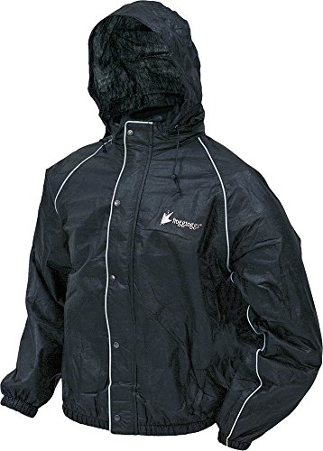 Studio : Frogg Toggs Publisher : Frogg Toggs Product Description Bomber style jacket design with classic 100% waterproof/breathable. Frogg Toggs, nonwoven polypropylene material. Frogg Eyzz reflective piping provides better visibility at night or in low light conditions. Features a raglan design action cut sleeve which offers larger arm openings for easy on and off and more mobility. Sleeve design also eliminates seams on shoulders and other stress points. Tuck away hood designed to be worn under helme. 1in. waist band and 1in. wrist bands designed to keep rain out. Front zipper closure. Storm flap with nickel plated spring snaps that will not rust. Full cut designed for active use and designed to worn over insulated clothing. Reinforced seams and expandable features enhance durability, and the perfect fit. False cape design offers increased rain protection while preventing ballooning of garment. 0