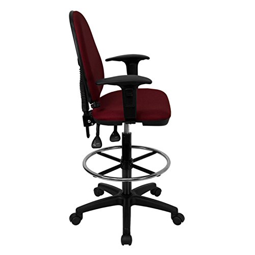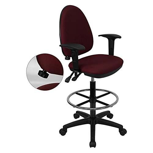 -. Title : Mid-Back Multi-Functional Drafting Stool with Adjustable Lumbar Support iBurgundy