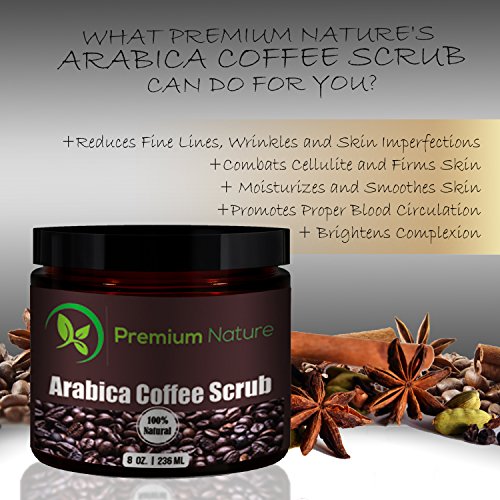 - Title : 100% Natural Arabica Coffee Body Scrub with Sea Salt, Olive Oil & Shea Butter- Acne Treatment, Exfoliate, Moisturize, Tone & Reduce Cellulite, By Premium Nature