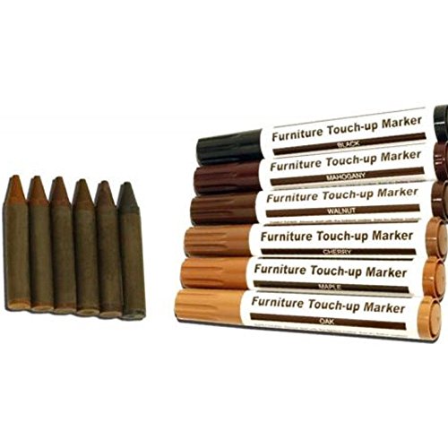 -. Feature : ✔ PERFECT DIY HOME FURNITURE REPAIR KIT: Perfect for vintage furniture / ✔ EASY TO USE: Just draw over scratch, nick or discoloration & watch them disappear permanently / ✔ LARGE TIP LIKE A MARKER: Large felt-tip markers and paper wrapped wax sticks contain special stain to match wood finishes / ✔ QUICK INSTANT RESULTS: Instantly cover Blemishes, nicks & scratches on wood, wood-veneer, furniture, trim, cabinets, doors, frames, etc. / ✔ MATCHES THE WOOD: 6 Large felt-tip markers contain special stain to match 6 wood finishes: cherry, mahogany, walnut, black, maple, and oak