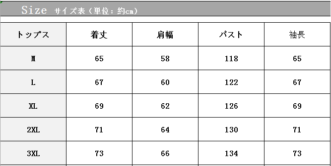 【3XL】バスト約1334cm 丈約73cm 肩幅約66cm 袖丈約58cm