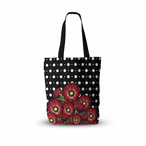 KESS InHouse Tobe Fonseca "Spring Pattern Floral Red" Black Red Mixed Media Everything Tote Bag, 13" x 13", Multicolor