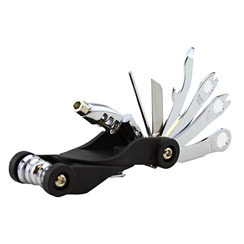LB1 High Performance 20 Multifunction Tool is the most comprehensive tool set available and is all you need for your emergency roadside repairs, as well as general maintenance. This bike bicycle cycling tool is ingeniously designed to easily pull apart and act as a tire lever while making the assortment of tools easily accessible. It's lightweight, compact designed and comes with the durable nylon bag to protect the tool and easily take with you on the road. Tool includes: - 2, 2.5, 3, 4, 5, 6, 8 mm Hex keys. - 8, 9, 10 mm wrenches. - Phillips flat-head screwdrivers. - Chain tool. - 2 Spoke wrenches. - Stainless steel knife. - 2 Tire levers. - Bottle opener. - Self adhesive tire patches.