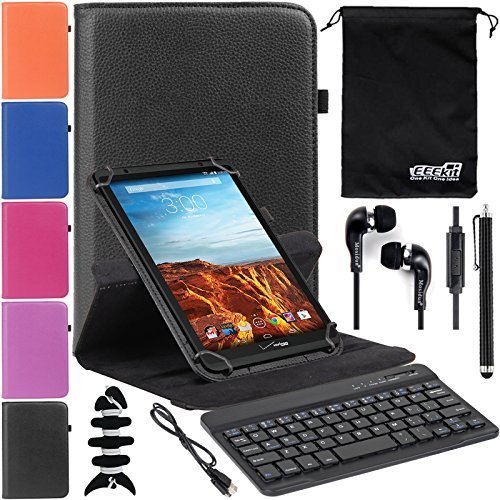 Feature : Verizon Ellipsis 8 Stand Rotating PU Leather Cover Case: 100% Brand new and high quality. Protects the device from scratches, shocks and other accidental damages. Ultra lightweight slim shell standing case, durable and easy to carry. With an extendable stand to support your Tablet comfortable to watch movies, read ebooks or type. 360 degrees rotation provides both portrait and landscape view. / Ultra thin Bluetooth keyboard, compatible with three systems: Android, ios, Windows, helps you have a quick tying with your tablet in business. Powered by rechargeable Lithium battery. Operation distance: Up to 30 feet. / The earphone with mic provides crisp, high-definition stereo sound and includes a convenient, in-line single button remote/microphone to control mobile device. Universal stylus makes it convenient to turn pages, taking notes, drawing, or typing on your device with the durable rubber tip. / Fishbone Headset Wrap is made of soft, dust-repelling silicone, The fishbone can keep your cables tangle-free and just the right length. (Accessory ONLY. Phone NOT included) EEEKit Pouch is provided for working as your moving pocket which you can find the camera and all the accessories right away whenever you need them. Size: 11.6*6 Inch. / Kit Includes: 1 x Stand Rotating PU Leather Cover Case, 1 x Ultra thin Bluetooth keyboard, 1 x Bluetooth keyboard Charger Cable, 1 x Verizon Ellipsis Earphone, 1 x Stylus Pen, 1 x Fishbone Headset Wrap, 1 x EEEKit Pouch.