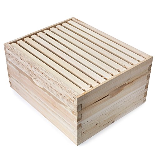 Honey Keeper Beehive 10 Frame Kit Super Box and 10 Deep Frames with Foundations for Langstroth Beekeeping