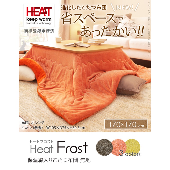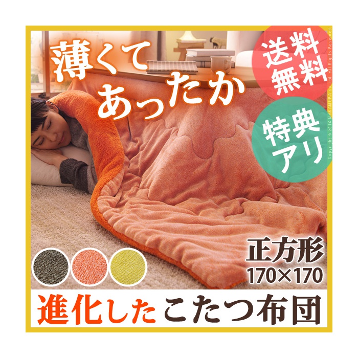 Rakuten 【무료 우송】난로 이불 정방형 중면-안솜 『보온면 들어감 난로 이불 무지 타입 〔heat 프로스트〕 170x170cm』 방오가공 난로용 이불 발수 씻을 수 있 심플 따스한
