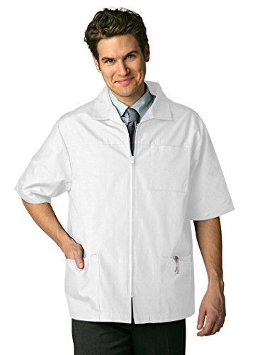 Adar Universal Men's Zippered Short Sleeve Scrub Jacket (Available in 8 solid colors)