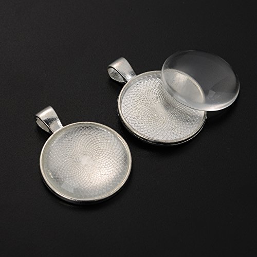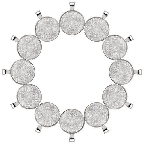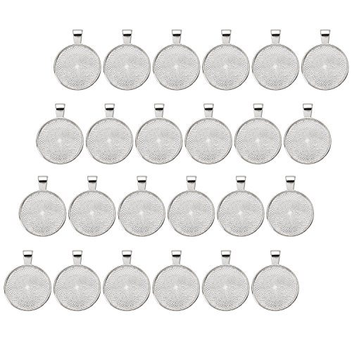 Shappy 24 Pack Bezel Pendant Trays Round Cabochon Settings Trays Pendant Blanks, 25 mm Diameter, Silver