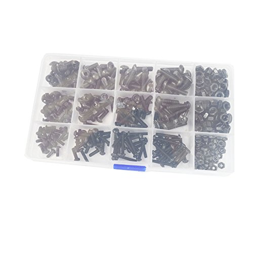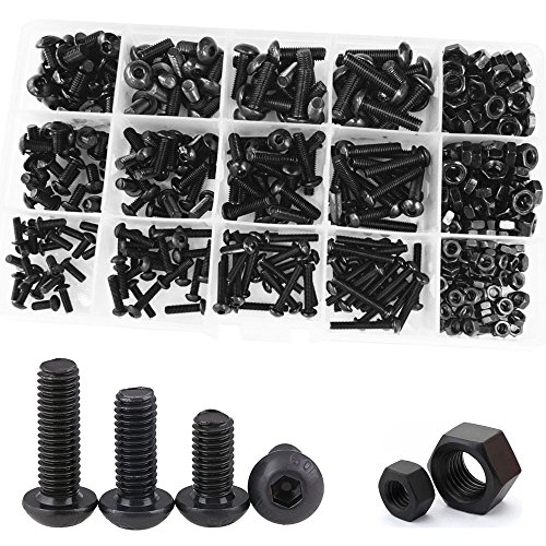 M3 M4 M5 Button Head Bolts Hex Socket Cap Metric Screws Nuts Alloy Steel Assortment Kit 431Pcs,Black 10.9Grade