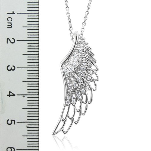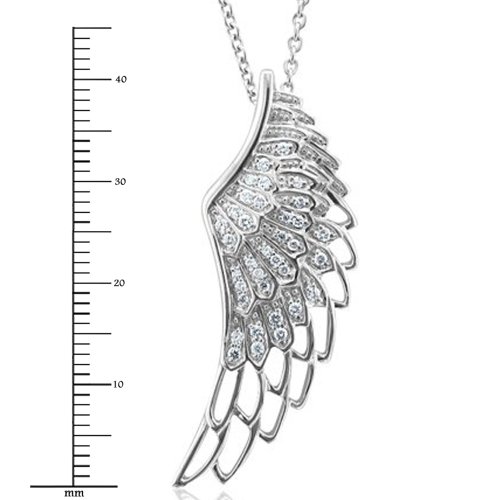 -. Title : Sterling Silver Angel Feather Wing White Diamond Pendant Necklace (1/4 Carat)