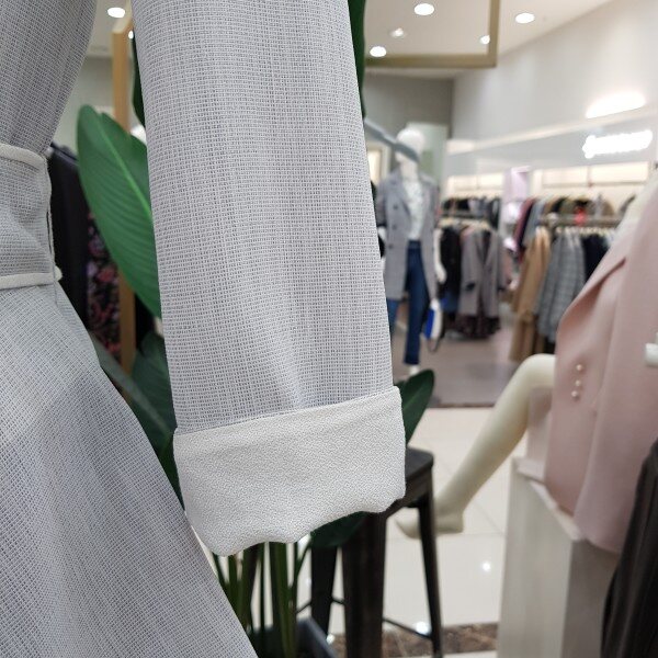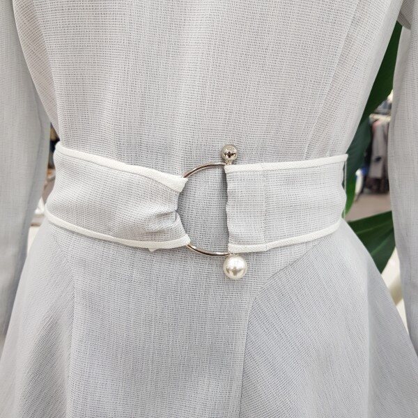 여성스러움을 강조한 타입으로 자켓대용으로 좋아요 칠부소매로 롤업가능하고 진주장식 벨트로 라인을 강조하여 세련된타입으로 코디 가능해요
